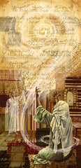 The original paintings in this series were created using layers of different materials. Beneath the painted images, actual pieces of fabric were sewn together and sealed to the canvas. Layers of paper, text, drawings and designs were sealed down as a foundation on which the images were painted. Beyond the physical layers of these paintings lies an even deeper level of meaning and a great story that has been unfolding for thousands of years. The foundation of this magnificent story is found in the words of God in the Bible, and its impact is seen in the lives of all who have been changed by it. As one who fears God, I have studied His words to know and understand this great story, and to convey it through my paintings so that the true meaning will be made clear, and the greatness of God will be seen. This is the story of the long awaited promises of God that were fulfilled two thousand years ago. This is the story of The Coming.