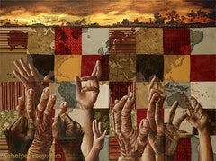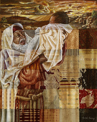The original paintings in this series were created using layers of different materials. Beneath the painted images, actual pieces of fabric were sewn together and sealed to the canvas. Layers of paper, text, drawings and designs were sealed down as a foundation on which the images were painted. Beyond the physical layers of these paintings lies an even deeper level of meaning and a great story that has been unfolding for thousands of years. The foundation of this magnificent story is found in the words of God in the Bible, and its impact is seen in the lives of all who have been changed by it. As one who fears God, I have studied His words to know and understand this great story, and to convey it through my paintings so that the true meaning will be made clear, and the greatness of God will be seen. This is the story of the long awaited promises of God that were fulfilled two thousand years ago. This is the story of The Coming.