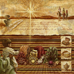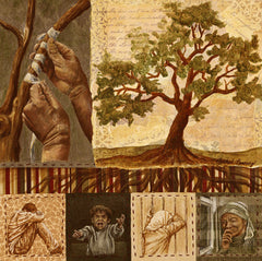 The original paintings in this series were created using layers of different materials. Beneath the painted images, actual pieces of fabric were sewn together and sealed to the canvas. Layers of paper, text, drawings and designs were sealed down as a foundation on which the images were painted. Beyond the physical layers of these paintings lies an even deeper level of meaning and a great story that has been unfolding for thousands of years. The foundation of this magnificent story is found in the words of God in the Bible, and its impact is seen in the lives of all who have been changed by it. As one who fears God, I have studied His words to know and understand this great story, and to convey it through my paintings so that the true meaning will be made clear, and the greatness of God will be seen. This is the story of the long awaited promises of God that were fulfilled two thousand years ago. This is the story of The Coming.